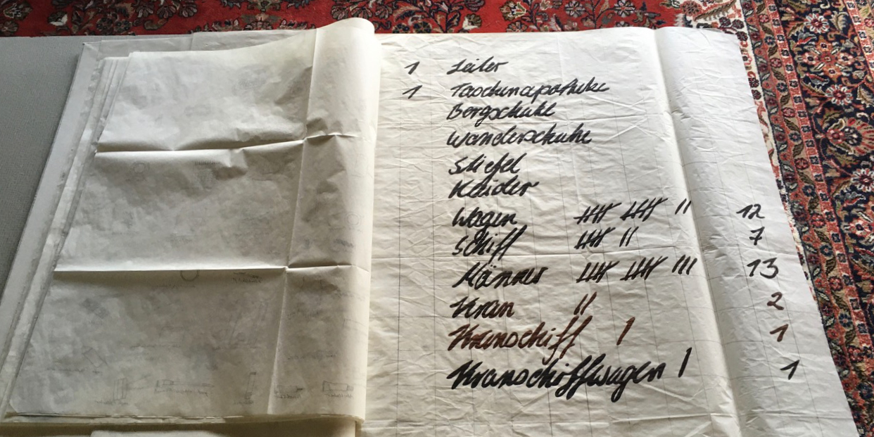Vorgeschichte: In „Die Erde ist rund“ (Peter Bichsel) bricht ein Mann auf, um immer geradeaus zu gehen und so schließlich dort anzukommen, wo er aufgebrochen ist. Angelehnt an diese Geschichte wurde im Sommer 2020 mit Bichsels erzählter Linie gearbeitet, es wurden die entstandenen Räume untersucht – Spuren, Stimmen, Perspektiven, Dokumente und einiges Unwägbare. Das entstandene Buchobjekt befindet sich in unserer Sammlung.