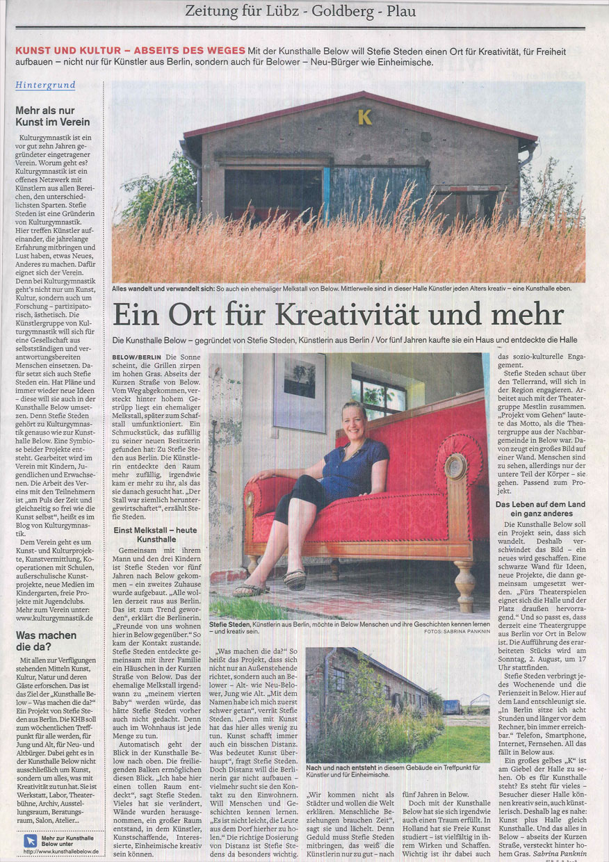 „Ein Ort für Kreativität und mehr“, Sabrina Panknin für die Schweriner Volkszeitung am 31.7.2015 oder online hier